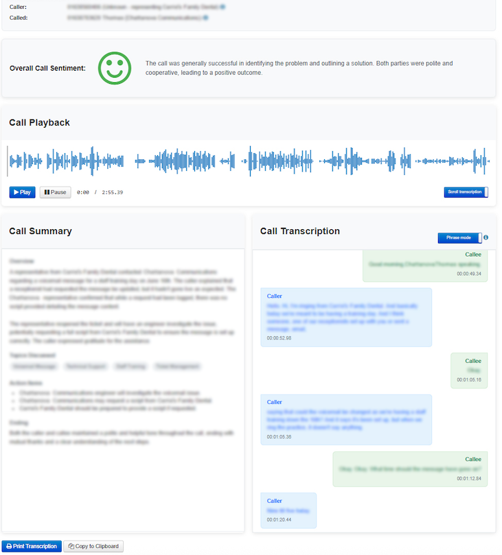 AI Intelligent SIP Trunks, analyse all calls from trunk side recordings and convert these into full transcriptions.